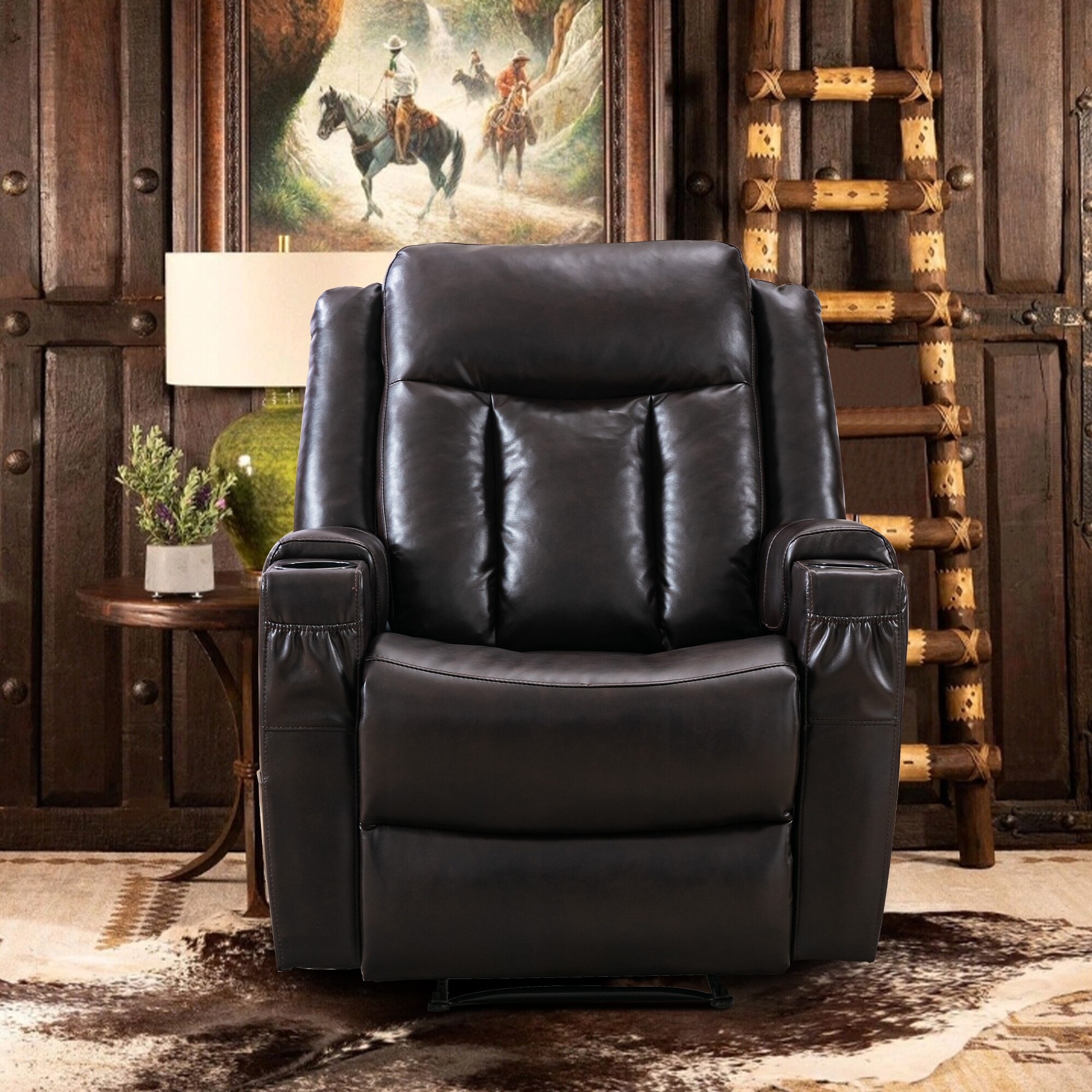 Fufu Gaga Big And Tall Black Faux Leather Recliner Sofa With Massage And Heat Function Tcht Wfkf180031