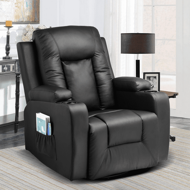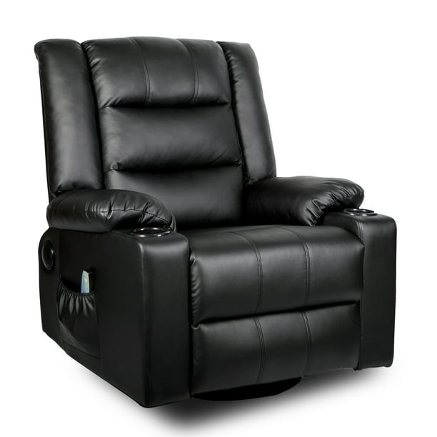 Comhoma Recliner Chair Leather Sofa With Heated Massage Living Room Chair Black Walmart Com